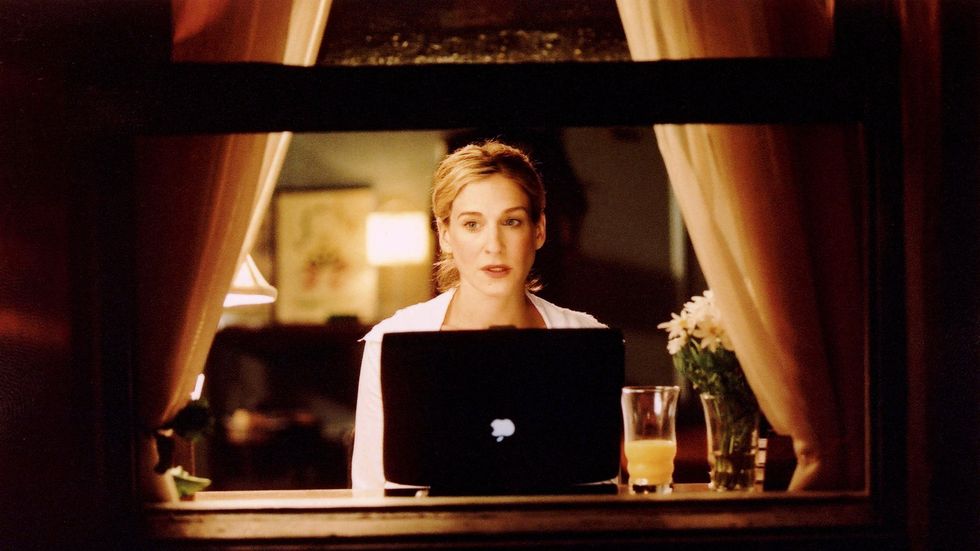 typing Sarah Jessica Parker as Carrie Bradshaw in “Sex and The City” Image: Rex Features