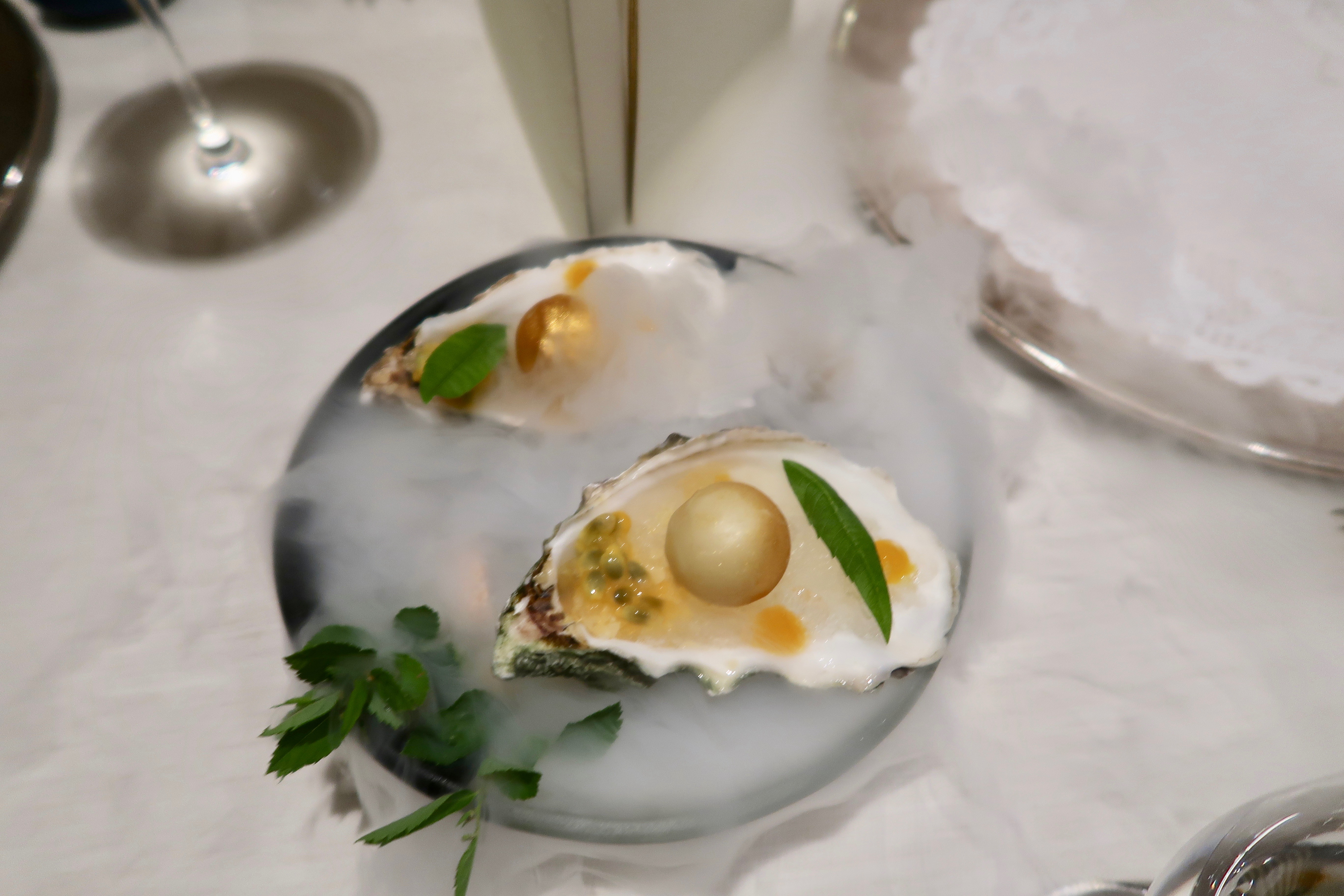 For the opening gala dinner, the sumptuous banquet Martin Sieberer prepared, included Artic char, veal, Chanterelle ravioli, or Granité of Champagne and lemon verbena in frozen oyster.