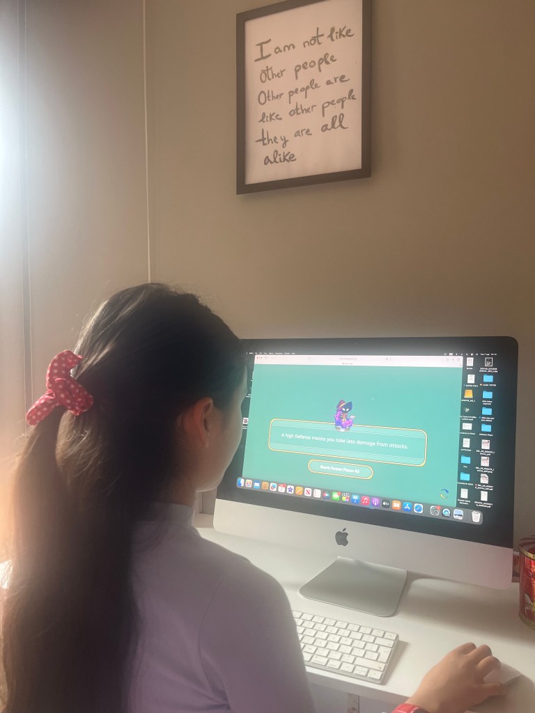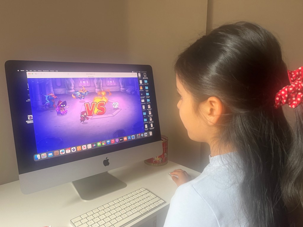 I could even hear her talking to the computer while in battle mode. But in order to beat this guy, she had to answer maths questions — and get them right. Not only was she reading the questions carefully, but she would grab pen and paper to work out the answers so she could progress in the game.