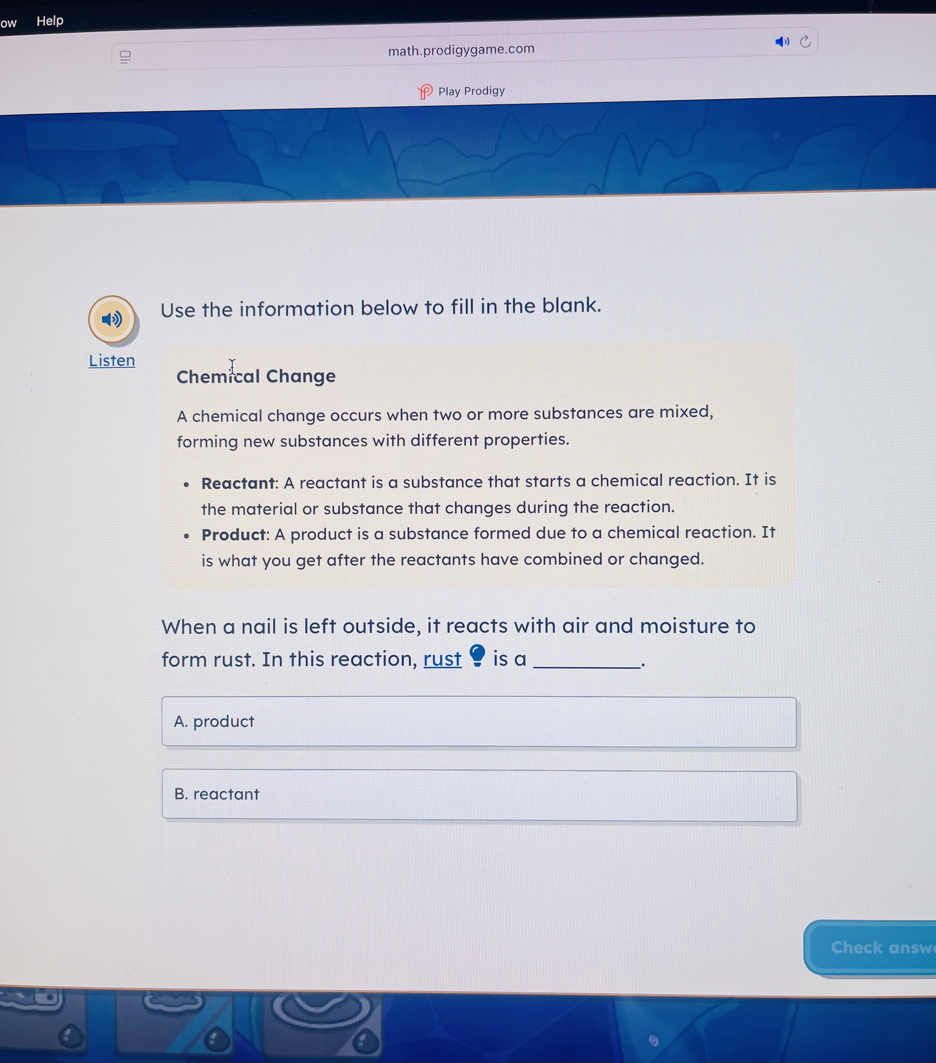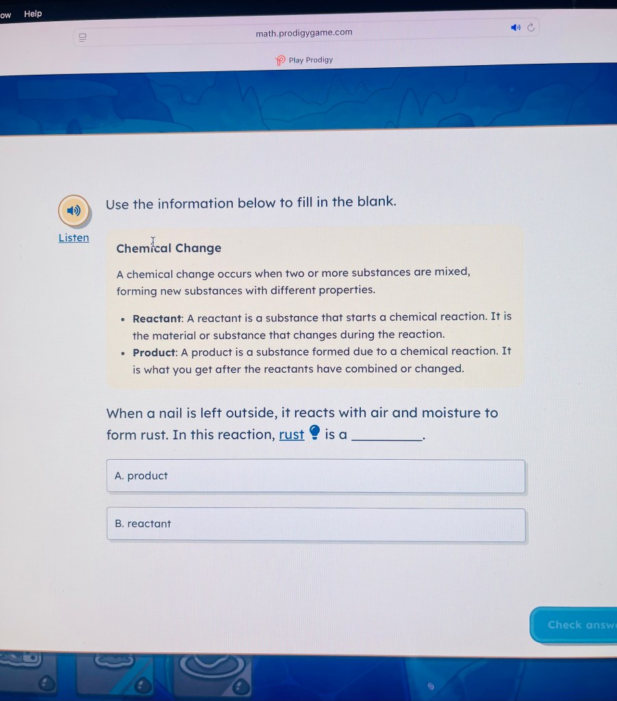 However, with the Ultra Membership, she unlocked science questions inside the maths game. Prodigy also has a separate English game that she can choose to play, where reading and language skills are practised in a different adventure.